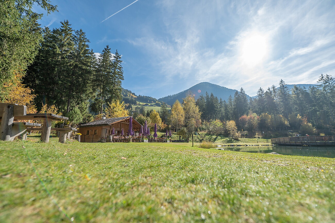Der Fischteich in Antholz Niedertal bietet ein ruhiges Ambiente zum Angeln. Snacks, Getränke und Eis