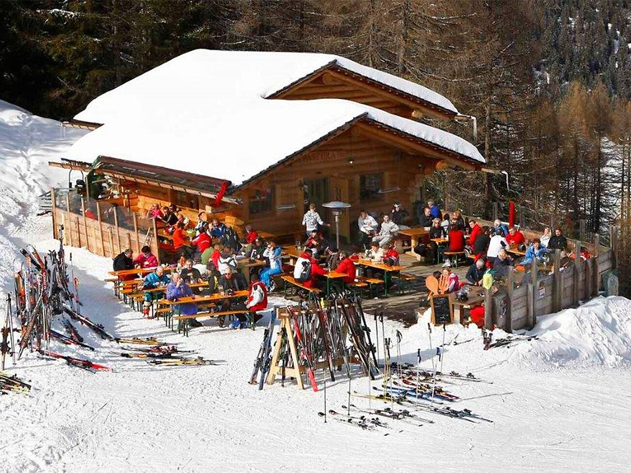 Take a rest in the Tyrolean hut or on our sunny terrace, protected from the wind and surrounded by the imposing Dolomites.