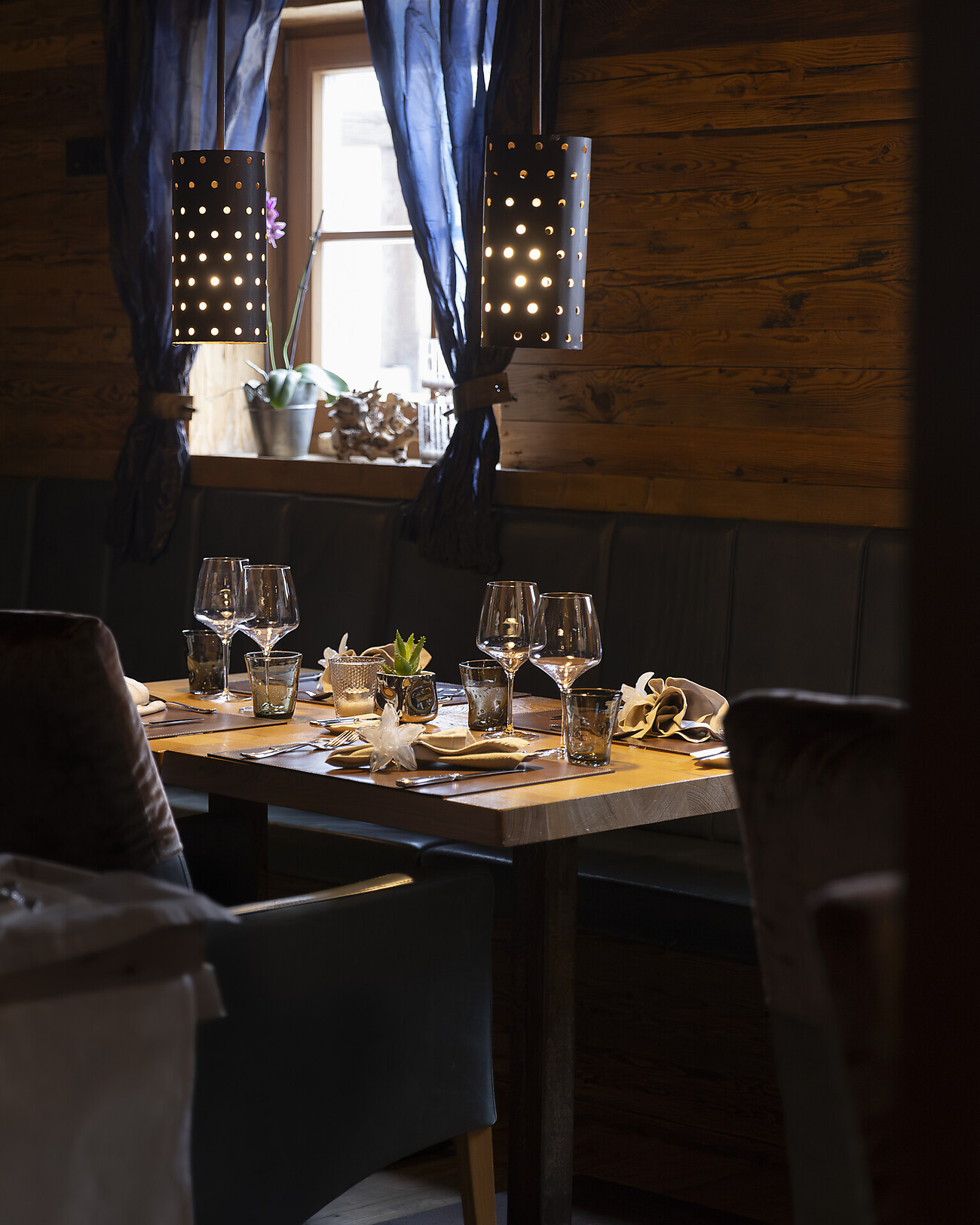 Four wonderful dining rooms, designed according to the principles of "Emotional Design" and created using exclusively high-quality materials. Lovingly furnished down to the smallest detail, in each room you can recognize the four elements of the Chinese art of Feng Shui: fire, earth, metal, and wood as carriers of universal energy.